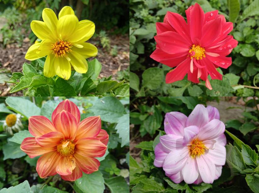 Though they’re a little late in gaining height, the sweat peas continue to trundle upwards. The ox-eyes daisies and mallows have reached the end of their time, and the annuals have taken centre stage. Each year I like to try out new bedding plants, and this year I got my hands on a mix of dahlia ‘Figaro’ plants in a wonderful variety of colours and configurations.